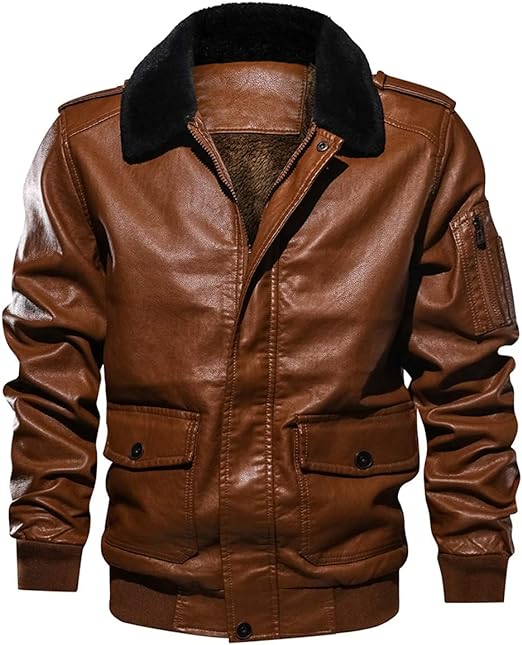 Timeless Style: Black Aviator Jacket with Brown Fur Collar